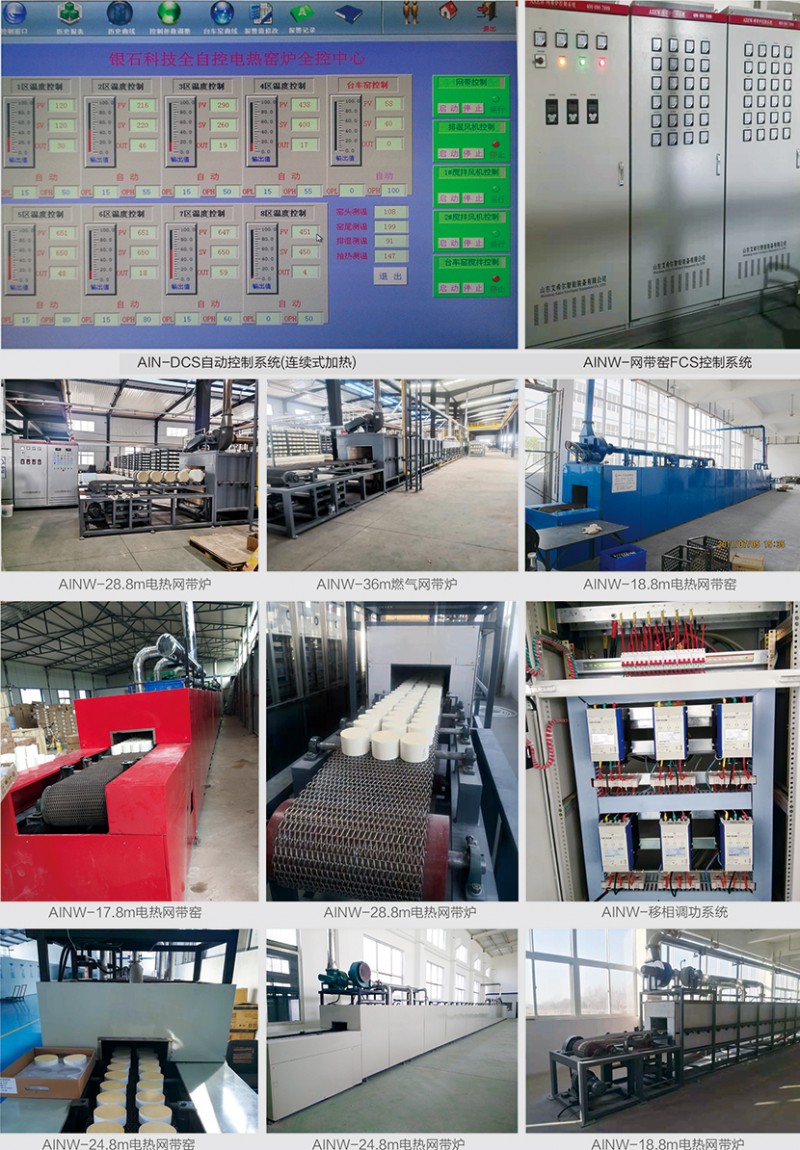 屬于連續(xù)性窯爐,傳動(dòng)方式為金屬網(wǎng)帶,金屬網(wǎng)帶由托輥或托板承載,主要用于陶瓷玻璃烤花、玻璃熱彎成型、玻璃退火、催化劑再生、粉體材料的干燥、焙燒。按加熱方式可分為燃?xì)饩W(wǎng)帶窯和電熱網(wǎng)帶窯兩類。網(wǎng)帶根據(jù)溫度選用不同材質(zhì)的不銹鋼材料,受金屬材質(zhì)所限,一般網(wǎng)帶窯使用溫度≤1050℃。主要適用于特種陶瓷、結(jié)構(gòu)陶瓷、電子陶瓷、功能陶瓷、磁性材料、電子粉體、電子器件、蜂窩陶瓷等領(lǐng)域,具有質(zhì)量穩(wěn)定可靠,爐溫均勻,得到客戶認(rèn)可,特別是節(jié)約能源做了大量工作。